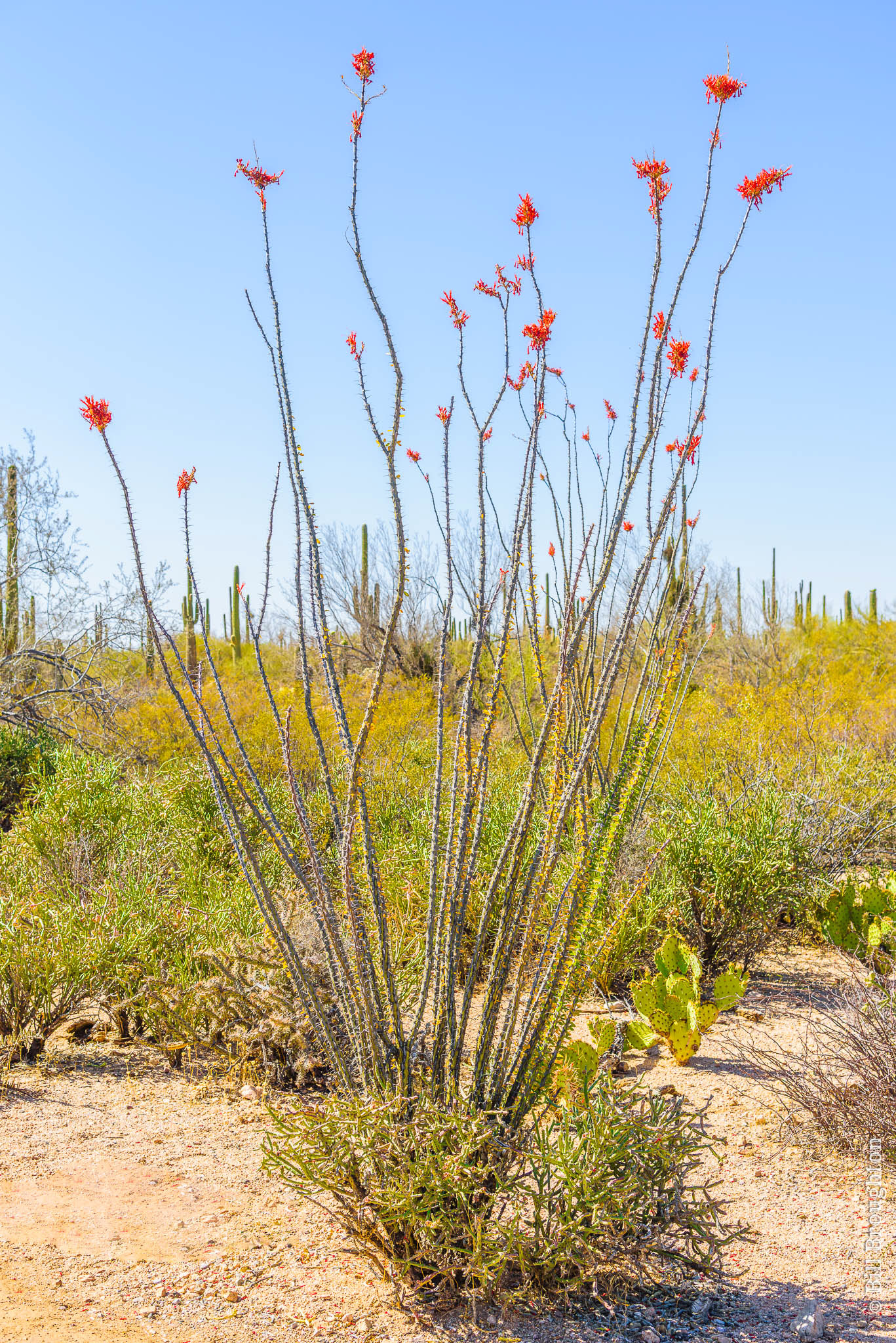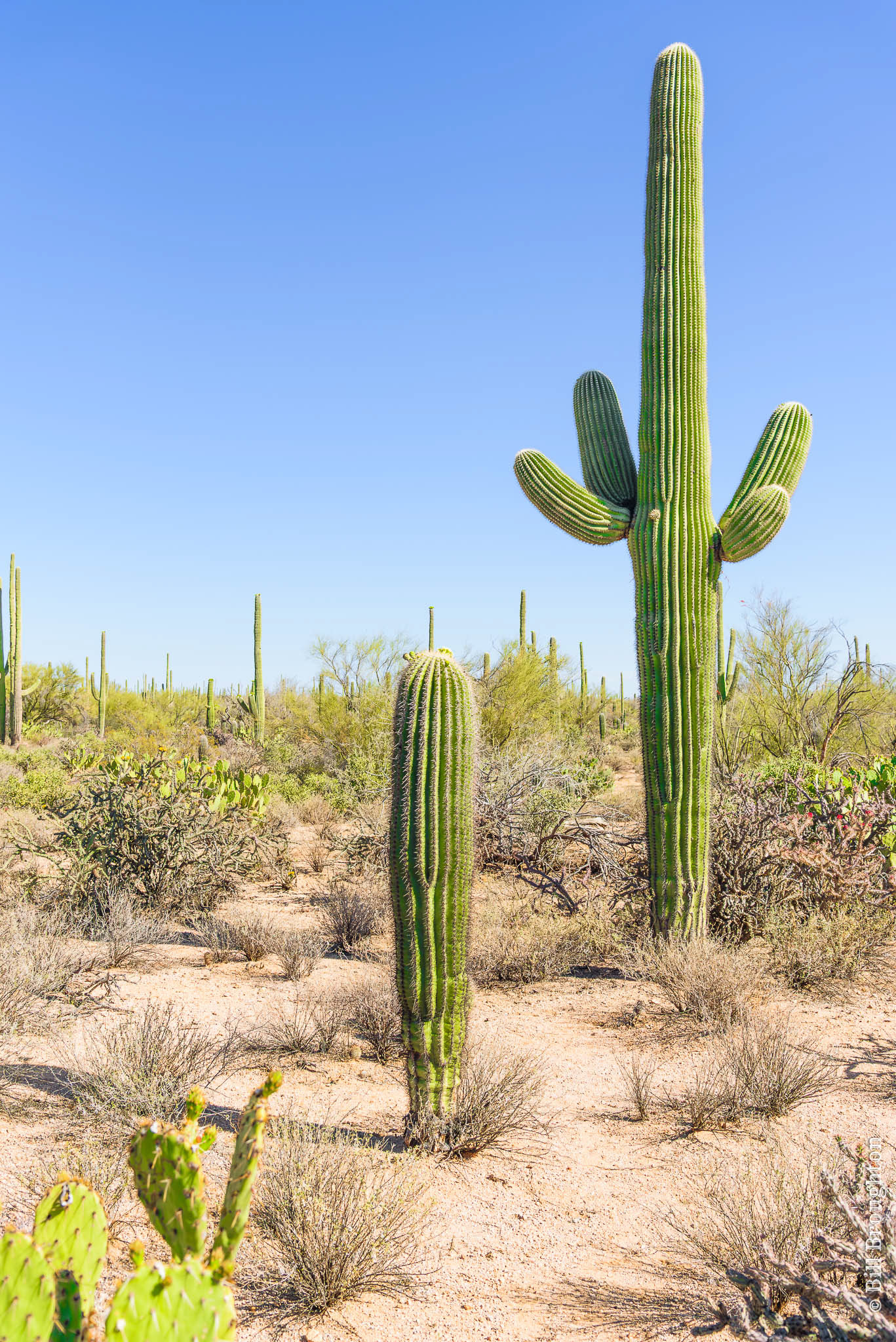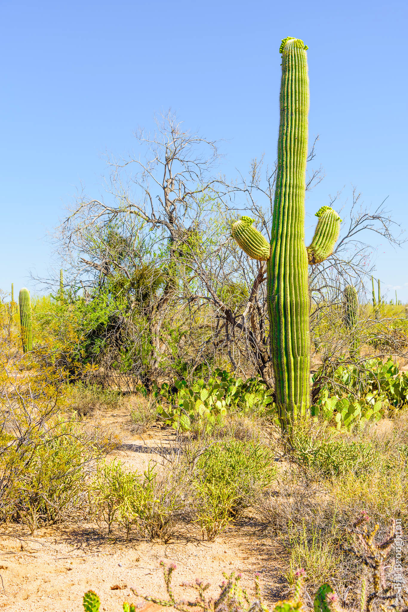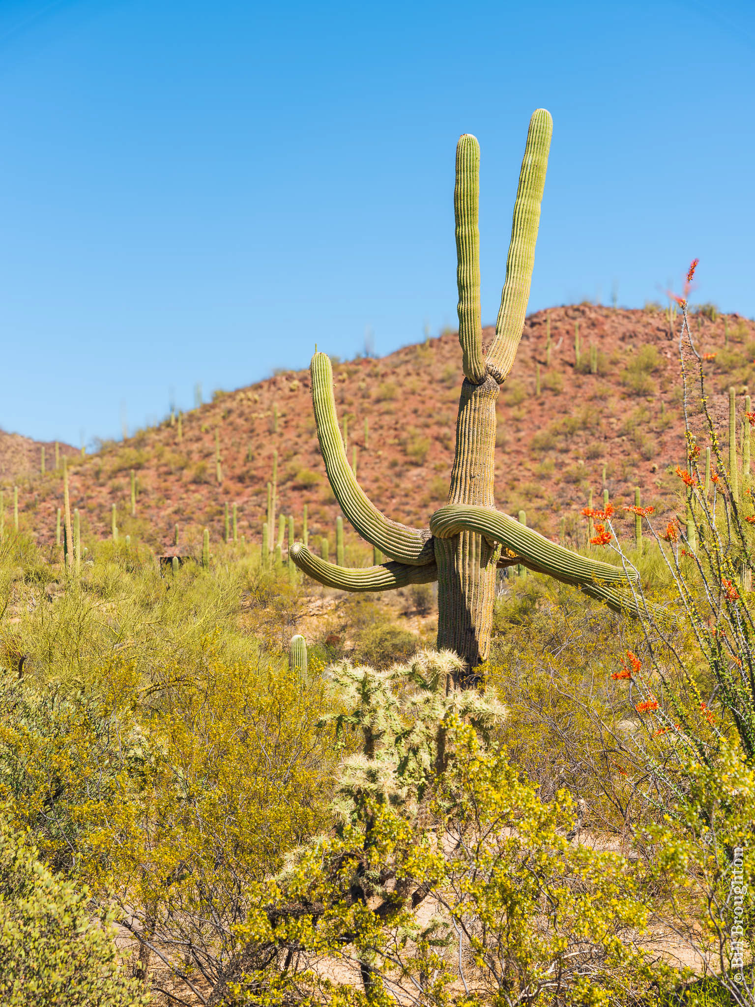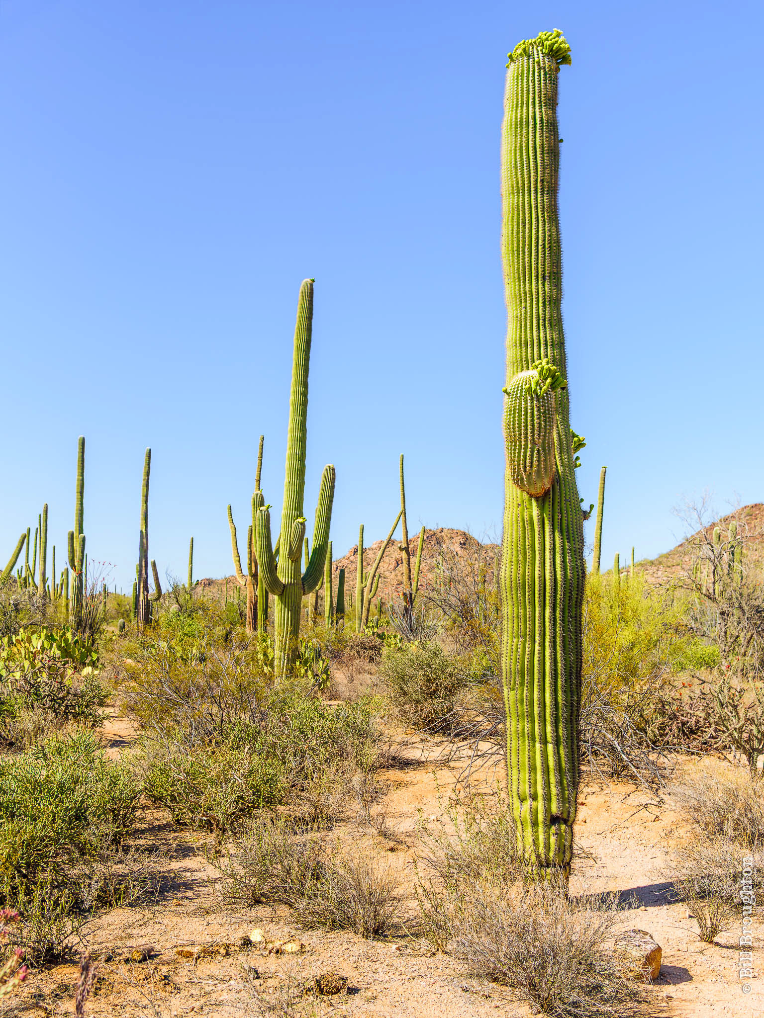 When thinking of this desert region, the first image in one's mind is often the native Saguaro cactus, typically characterized by its "arms". A given plant may grow over 50 arms or none at all.